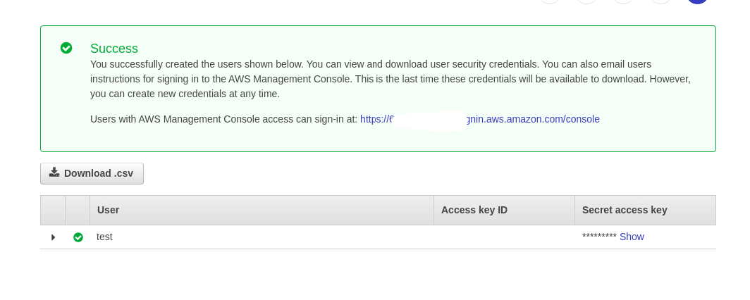 - Bạn sẽ nhận được Access Key ID và Secret key sau khi tạo user.