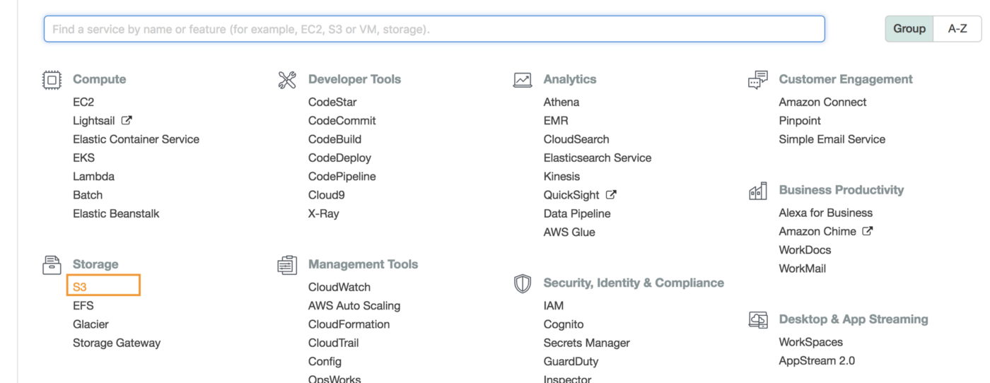 Bạn cũng có thể chọn S3 từ phần lưu trữ.