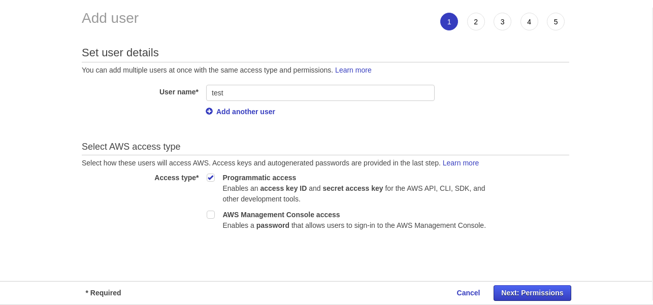 - Tiếp theo nhập tên người dùng và chọn Programmatic Access