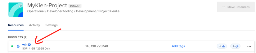 Khi  VPS tạo xong, chọn VPS vừa tạo
