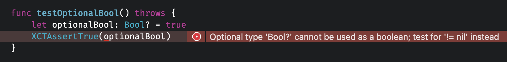 XCTAssertTrue(optionalBool == true)
