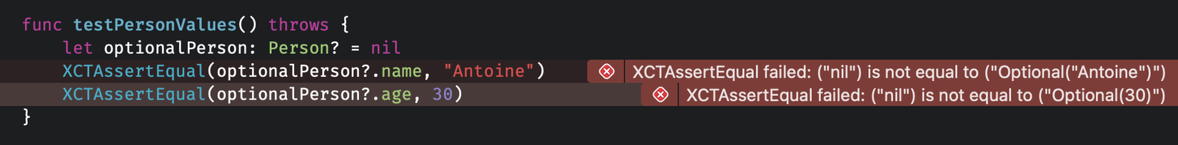 XCTAssertEqual(unwrappedPerson.name, "Antoine")