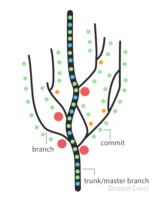 branchthể hiện mỗi nhánh nhỏ của một cái cây và nhánh chính tương đương với thân cây thường được gọi là master. Nếu từng làm việc thực tế trong các dự án bạn thường thấy nhánh master sẽ là nhánh rỗng, thay vào đó những developer sử dụng các nhánh có tên như development, product, test,.... Điều này giúp cho các lập trình viên phân biện và thao tác trên những môi trường tương ứng quan quá trình phát triển phần mềm một cách dễ dàng và minh bạch hơn.