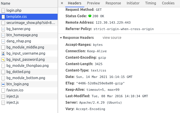 Nhưng các bạn thấy, css và image là những asset được browser cache in-memory (tức là không thèm gọi lại server tý nào). Thử nhìn vào response header khi mà file đó được load nhé: