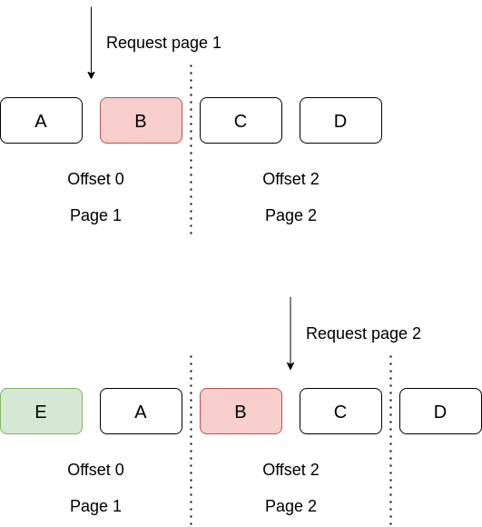 ~> Như vậy nếu có 1 item E được thêm vào trang 1 (trong khi user đã request trang 1), vậy thì khi user xem trang tiếp theo, rất có thể toàn bộ các item đã bị dịch xuống dưới và item B sẽ bị duplicate khi xuất hiện trên cả 2 trang.