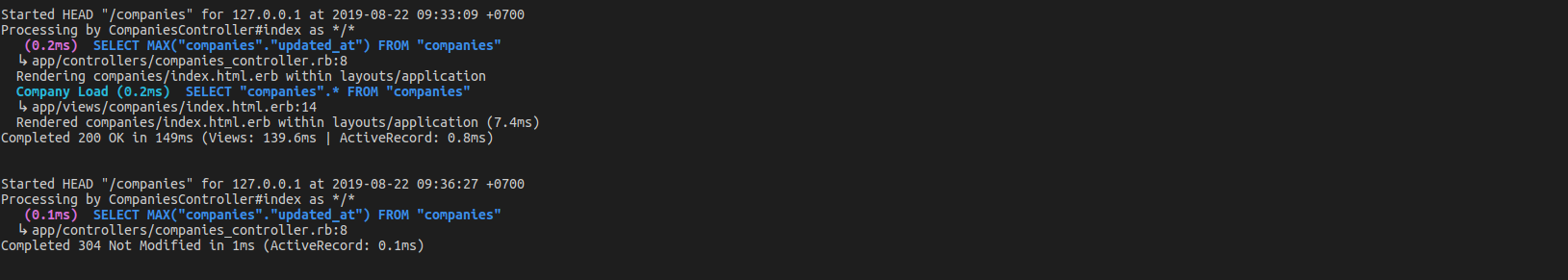 $ curl -I http://0.0.0.0:3000/companies --header 'If-Modified-Since: Thu, 22 Aug 2019 02:31:28 GMT'
