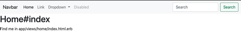 Mở file app/views/home/index.html.erb, thêm thử component navbar của bootstrap để kiểm tra:
