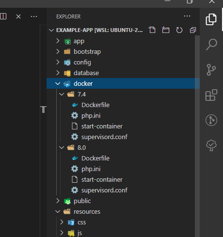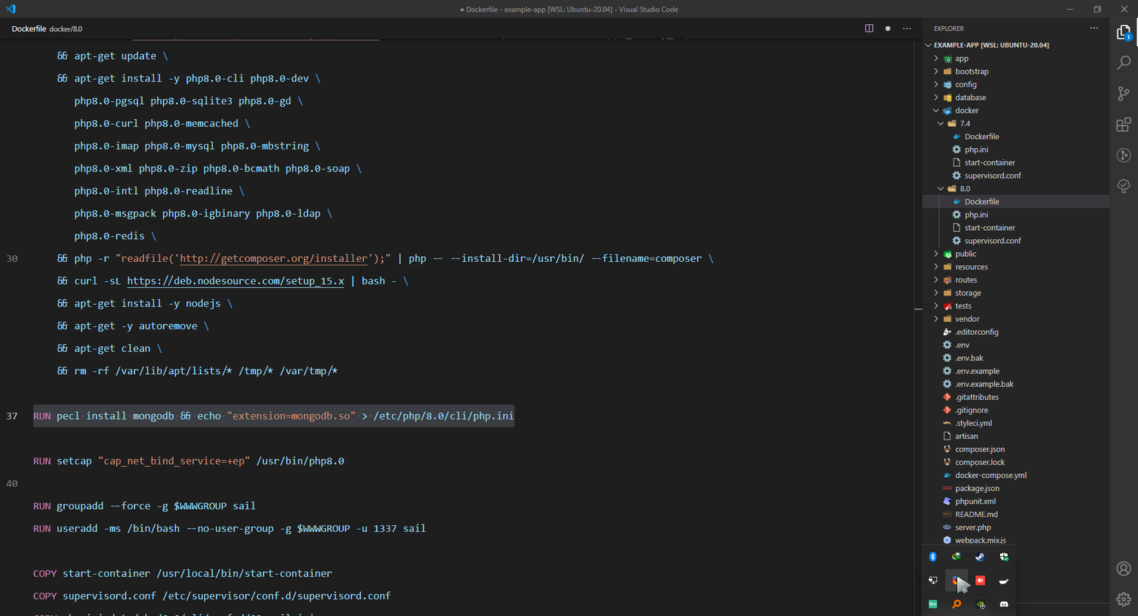 Ở đât các bạn sẽ thấy có 2 directory là 7.4 và 8.0 đại diện cho 2 phiên bản php mà Sail cho sẵn chúng ta xài, và mặc định đang xài bản 8.0 nha. Bây giờ chúng ta sẽ cố gắng cái php mongodb extension.