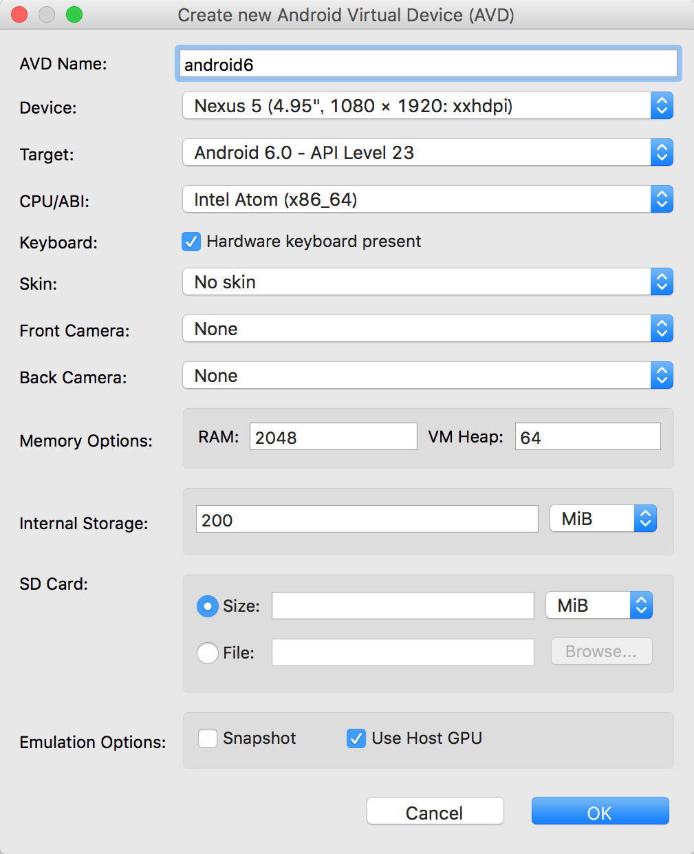 $ANDROID_HOME/tools/emulator @android6 &