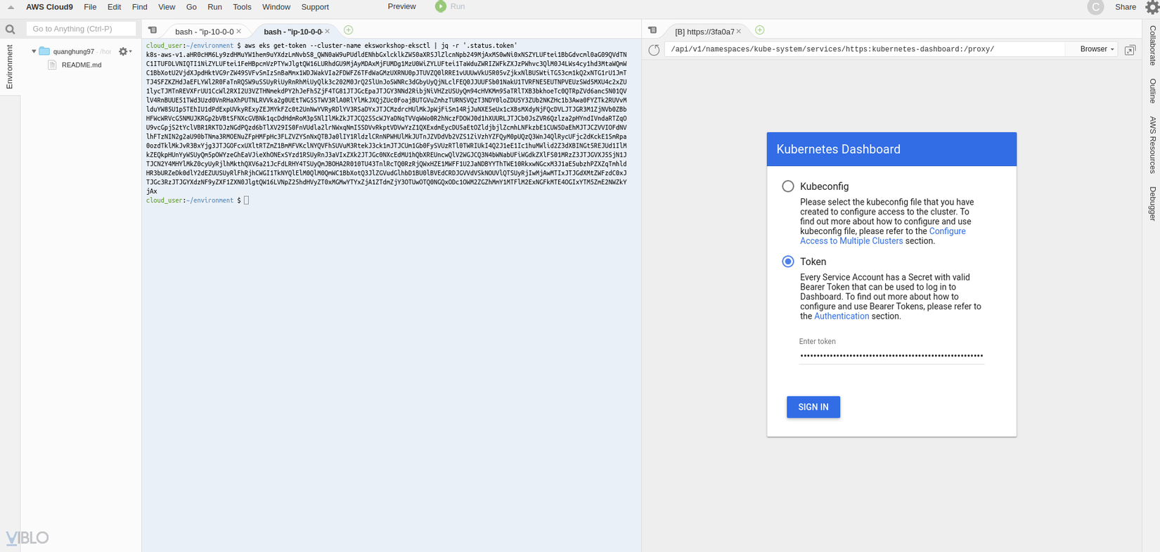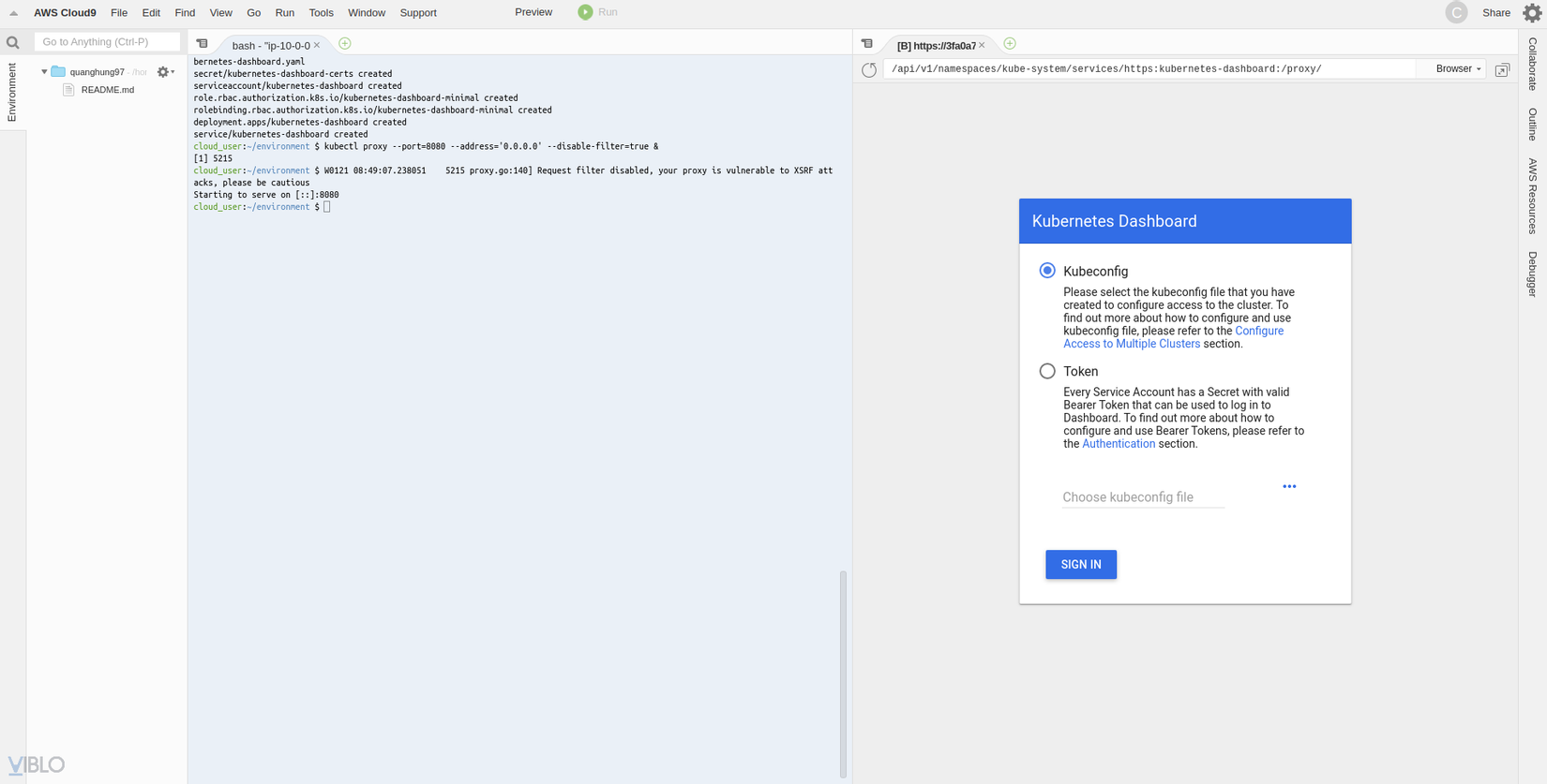 Trong cloud9 truy cập Tools / Preview / Preview Running Application