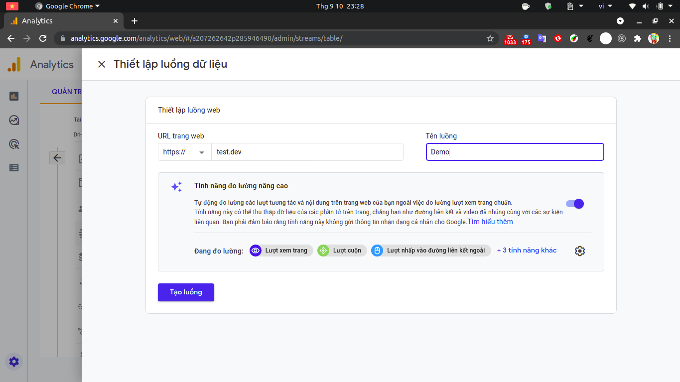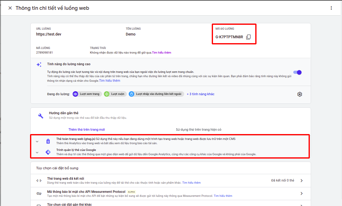 Sau khi đã tạo data stream, GA sẽ cung cấp mỗi stream một Measurement ID riêng biệt. ID này giúp định danh luồng dữ liệu cảu bạn khi gửi về GA.