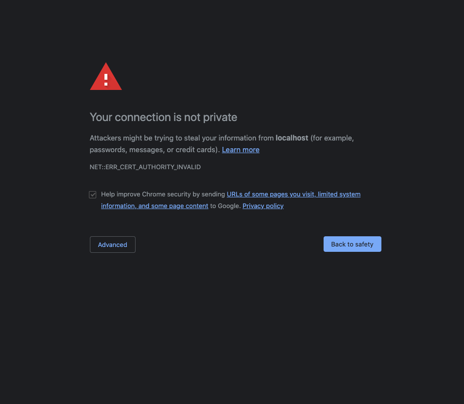 Ở bước trước, chúng ta đã set để cho phép app chạy https. Nhưng bạn chưa có một SSL Certificate, vì vậy kết nối của bạn hiển thị trên màn hình không được bảo mật. Vì vậy bây giờ chúng ta tạo SSL Certificate mà nó làm việc trên localhost. Cách đơn giản nhất để có được SSL Certificate, ta sử dụng một tool được gọi là mkcert
