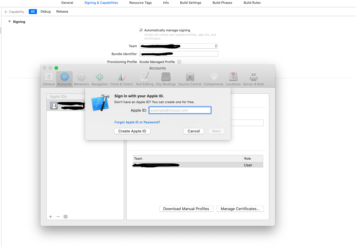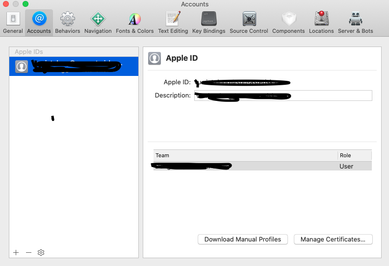 Vào XCode > Preference > Account