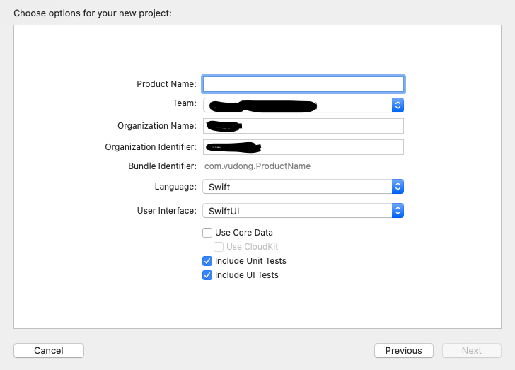 Để đơn giản thì chọn Single View App luôn