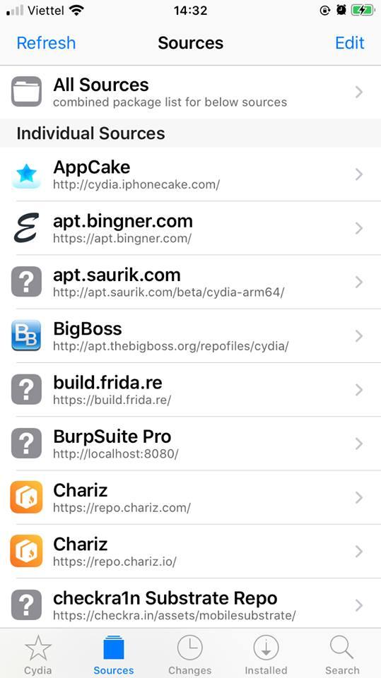 Phần này, mình mặc định như thiết bị được sử dụng đã jailbreak, tại đó chúng ta sẽ có sẵn 1 ứng dụng là Cydia