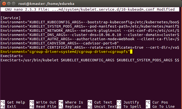 Environment=”cgroup-driver=systemd/cgroup-driver=cgroupfs”
