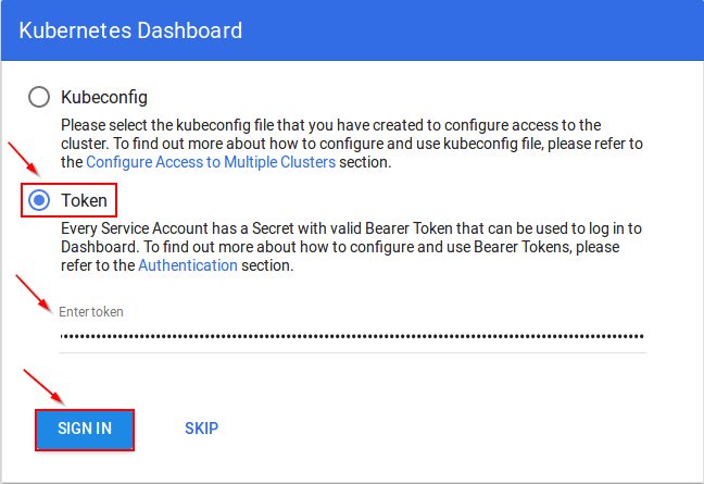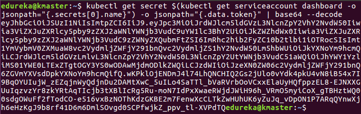 $ kubectl get secret $(kubectl get serviceaccount dashboard -o jsonpath="{.secrets[0].name}") -o jsonpath="{.data.token}" | base64 --decode