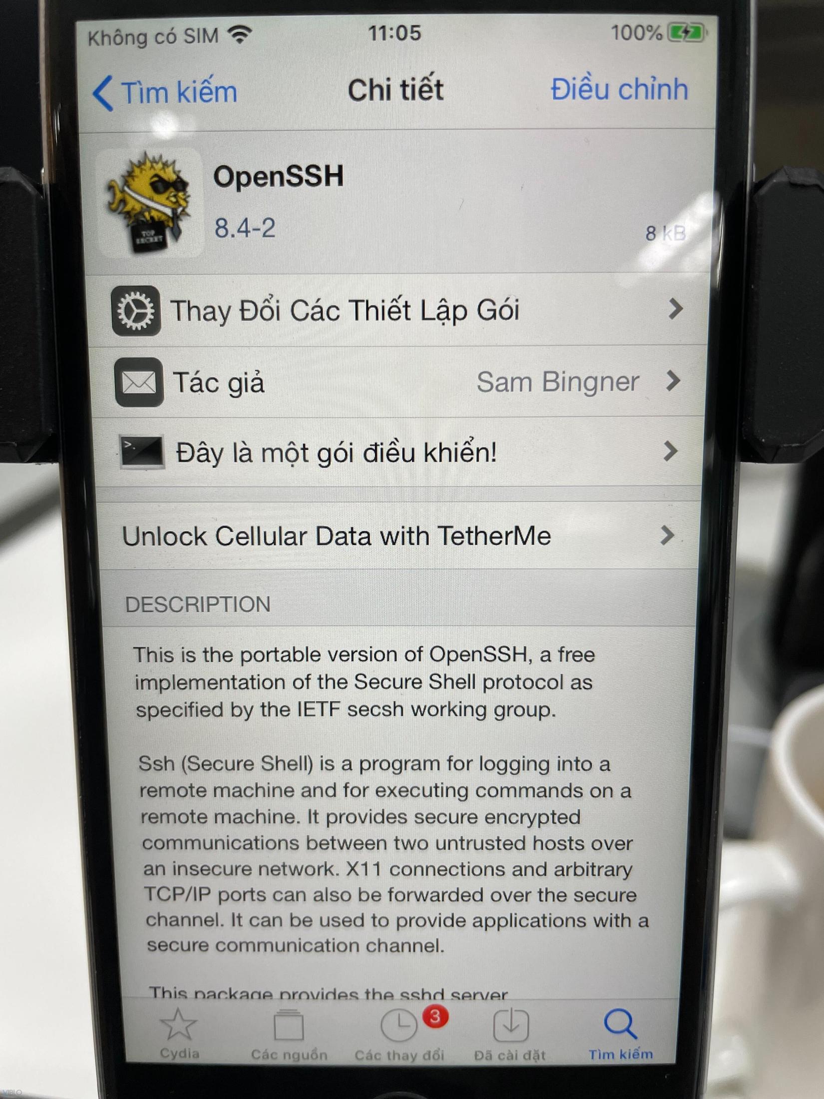 Sau khi quay lại Cydia, chúng ta sẽ thấy OpenSSH đã được cài đặt thành công.