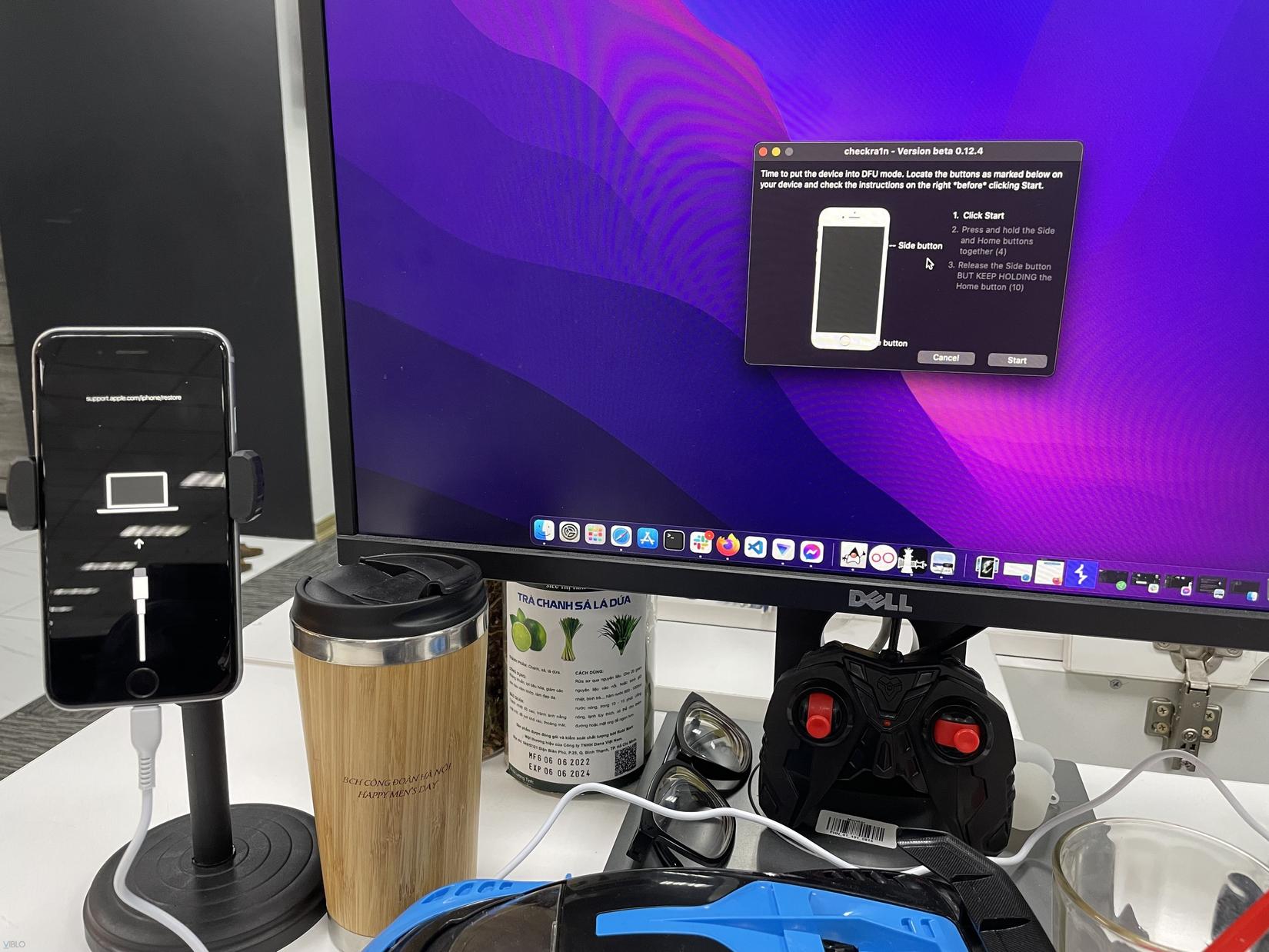 - Bước 3: bấm nút "start" để khởi động quá trình jailbreak trên checkra1n, sau đó làm theo hướng dẫn