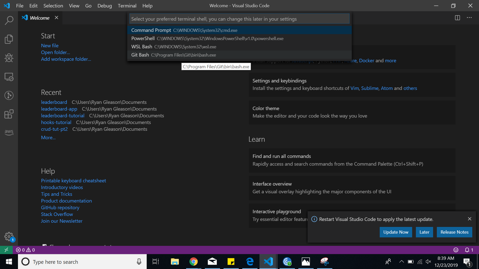 Bây giờ chúng ta sẽ thêm Git Bash như một thiết bị đầu cuối tích hợp bên trong VS Code.