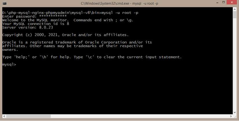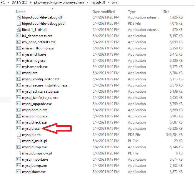 cd mysql-v8/binmysqld.exe -