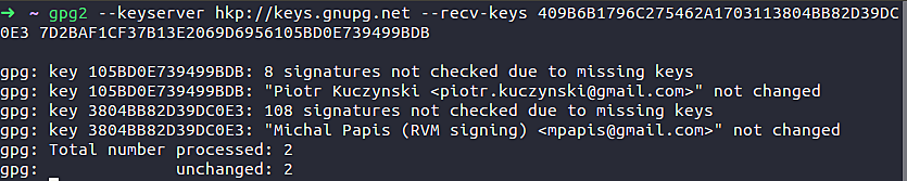gpg2 --keyserver hkp://keys.gnupg.net --recv-keys 409B6B1796C275462A1703113804BB82D39DC0E3 7D2BAF1CF37B13E2069D6956105BD0E739499BDB