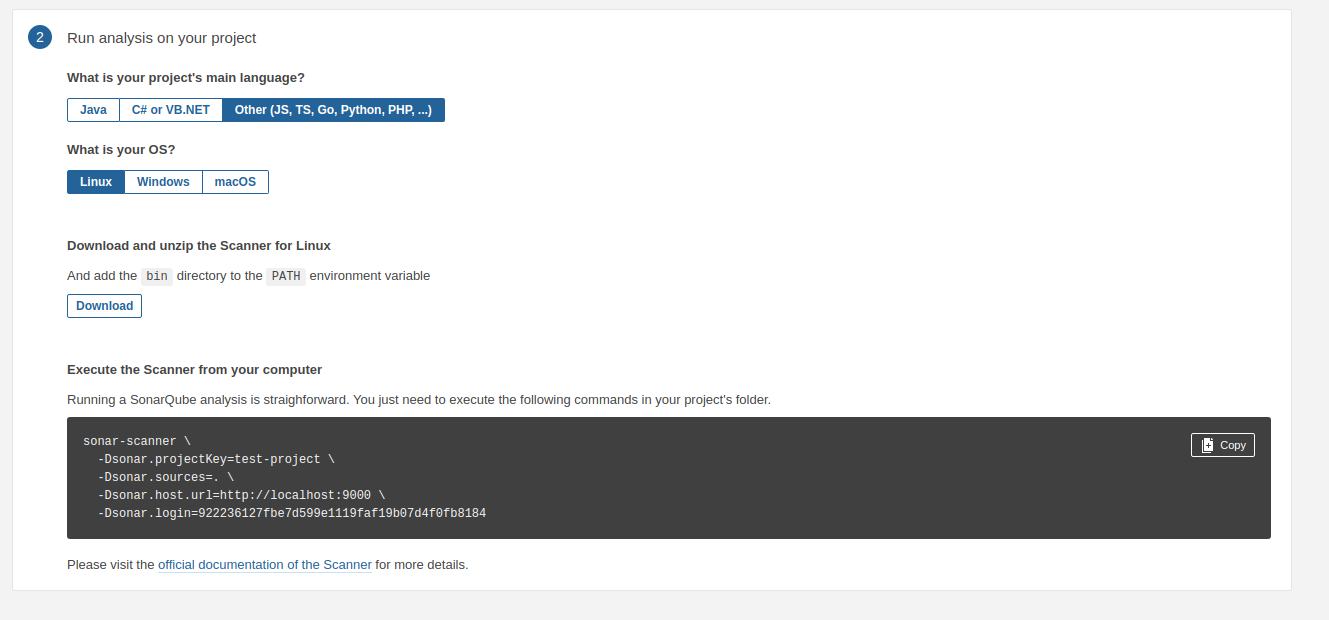 Để bắt đầu sử dụng SonarQube, bạn cần tạo 1 project trên web để lấy token và setup các rules cho SonarQube.