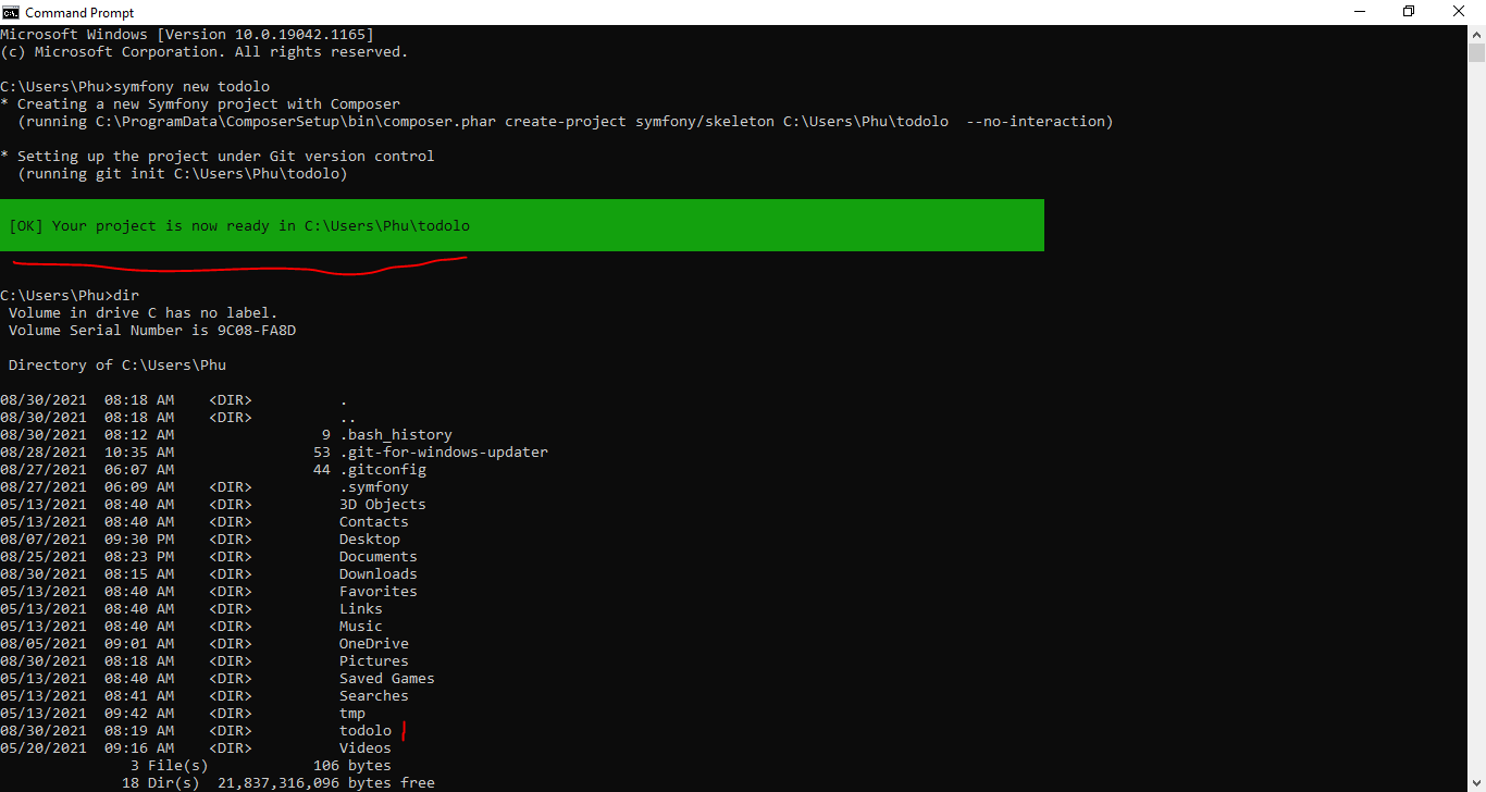 Thì sẽ tự động khởi tạo dự án Symfony phiên bản 5.3.