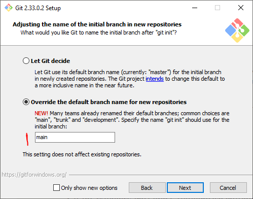 Ở bước 4, nếu các bạn đã biết về git thì các bạn có thể chọn như hình và gõ tên nhánh default của bạn. Trong trường hợp bạn chưa biết Git là gì, thì bạn hãy chọn Let Git decide sau đó các bạn bấm next: