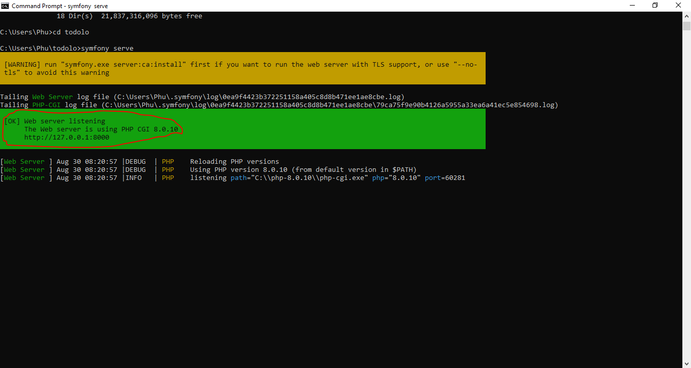 Cài đặt và chạy một trang web viết bằng Symfony trên Windows 10