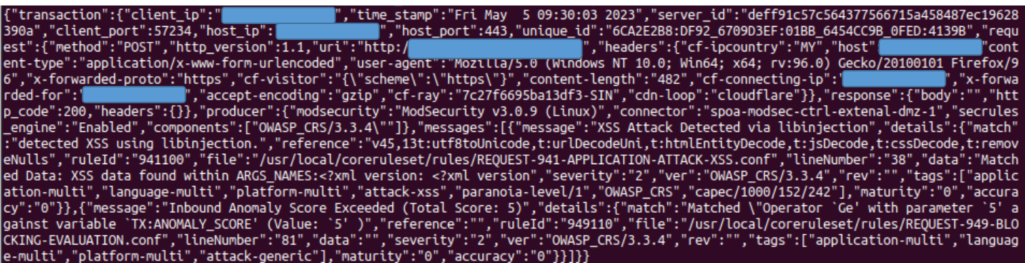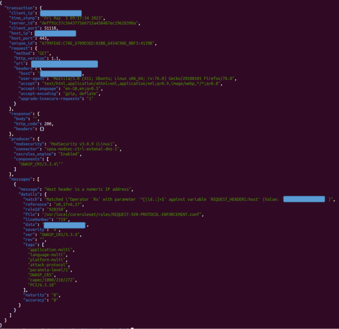 $ cat /var/log/modsecurity/modsec_audit.log | jq