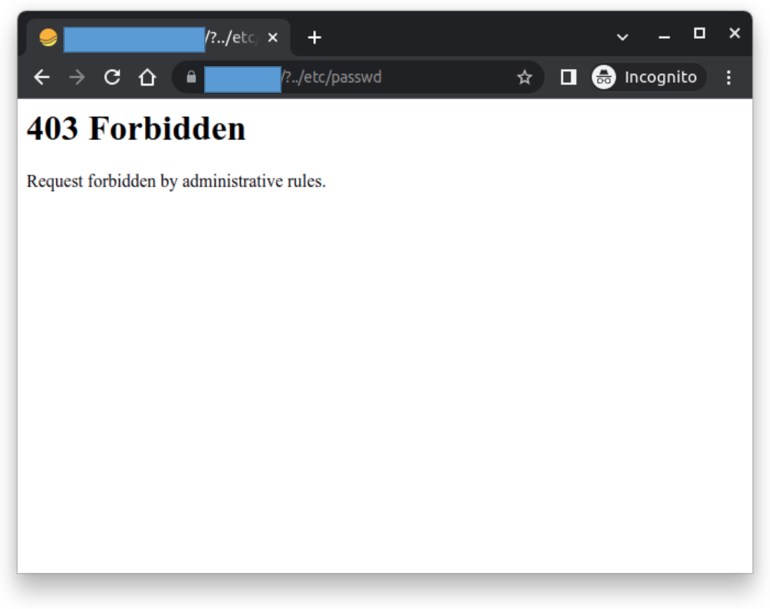 Truy cập vào web bằng một URL đáng ngờ và ta sẽ bị chặn lại