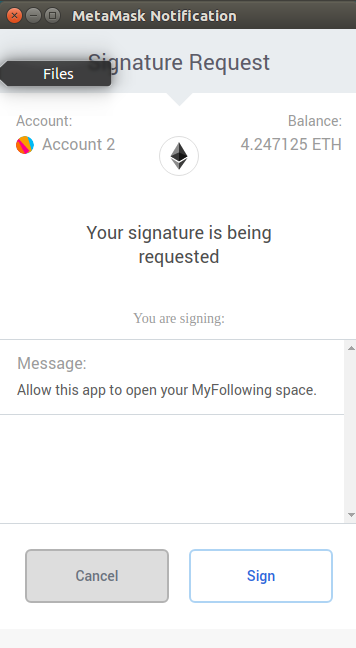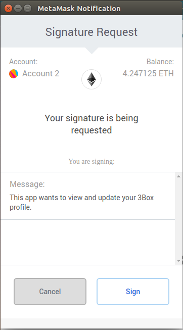Khi các ứng dụng gọi hàm openBox () hoặc openSpace () trong API 3Box để có quyền truy cập vào cơ sở dữ liệu của người dùng, yêu cầu được chuyển qua giao diện Ethereum JSON-RPC đến ví nơi sẽ hiển thị yêu cầu personal_sign cho người dùng.