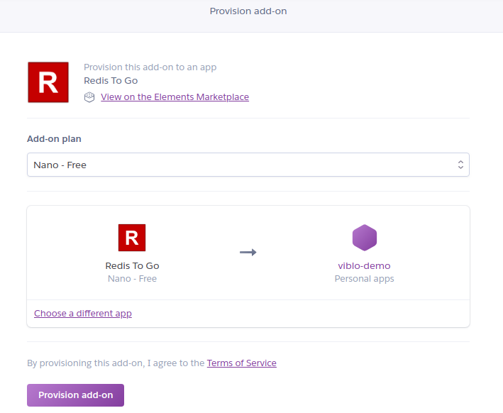 B3: Ở mục App to provision to chọn tên app của bạn. Xong thì bấm Provision add-on