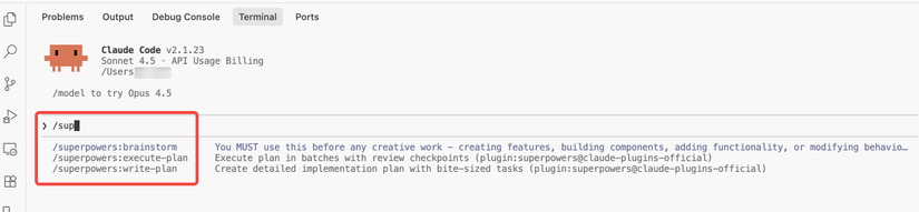 Kiểm chứng: Gõ /sup, nếu thấy execute-plan, brainstorm hay write-plan hiện ra là OK.