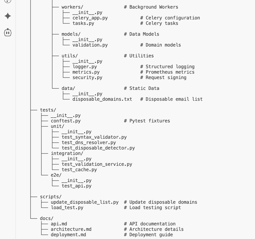 Prompt: I want to develop an enterprise-grade 'email validation service' in Python. It needs to support RFC standards (including sub-addressing user+tag), Internationalized Domain Names (IDN), and perform DNS MX record checks to prevent invalid emails. Please design the architecture.