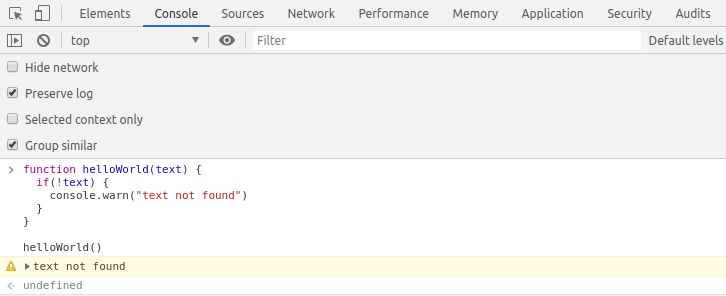 console.warn("text not found")