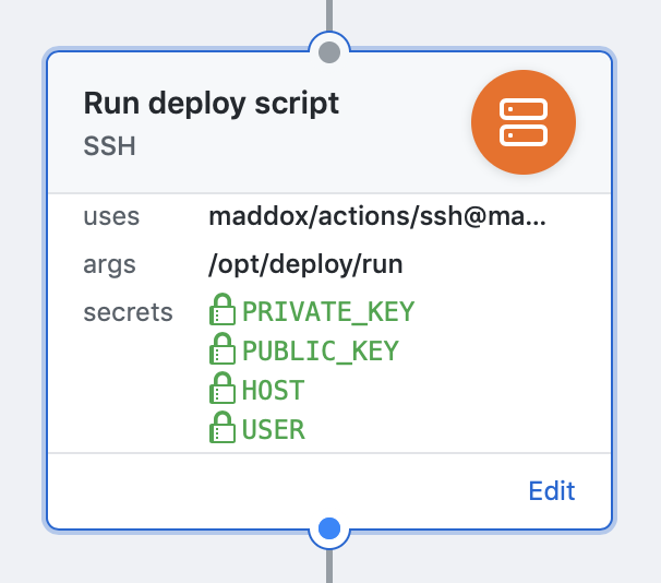 PRIVATE_KEY: SSH private key của bạn.HOST: Máy chủ lưu trữ hành động sẽ SSH để chạy lệnh. Ví dụ, your.site.com.USER: Người dùng lệnh SSH sẽ xác thực như với private key.