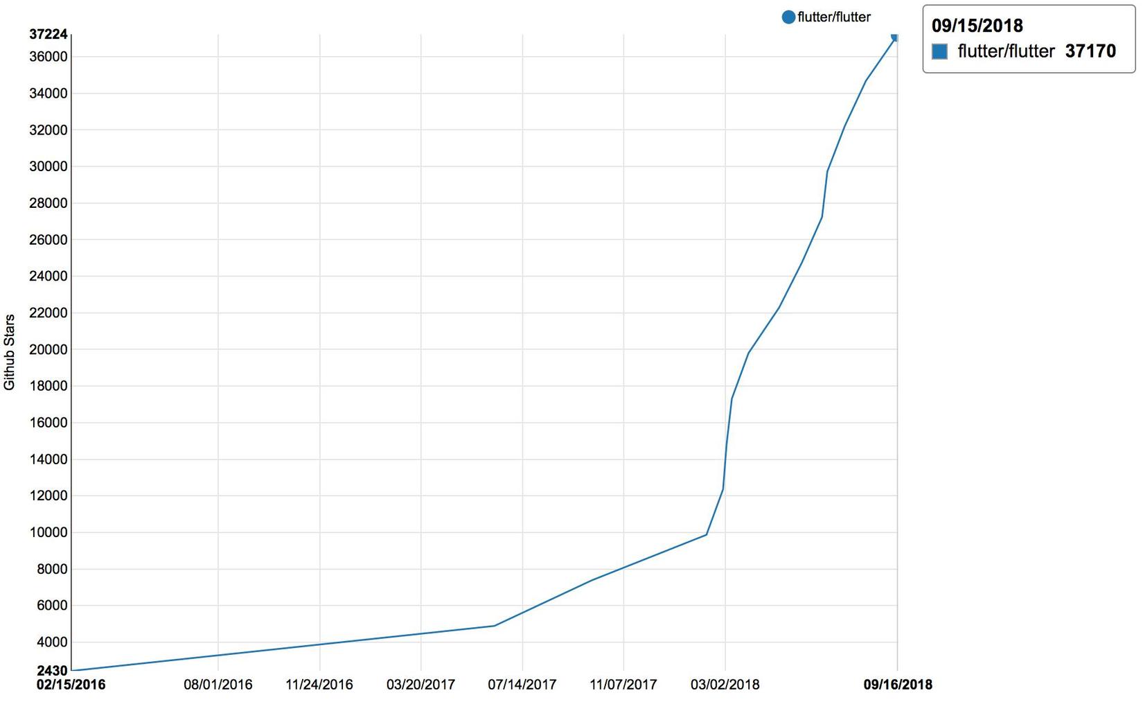 Trên trang github của Flutter cũng đạt hơn 37k star điều đó có thể thấy Flutter đang được cộng đồng quan tâm tới.