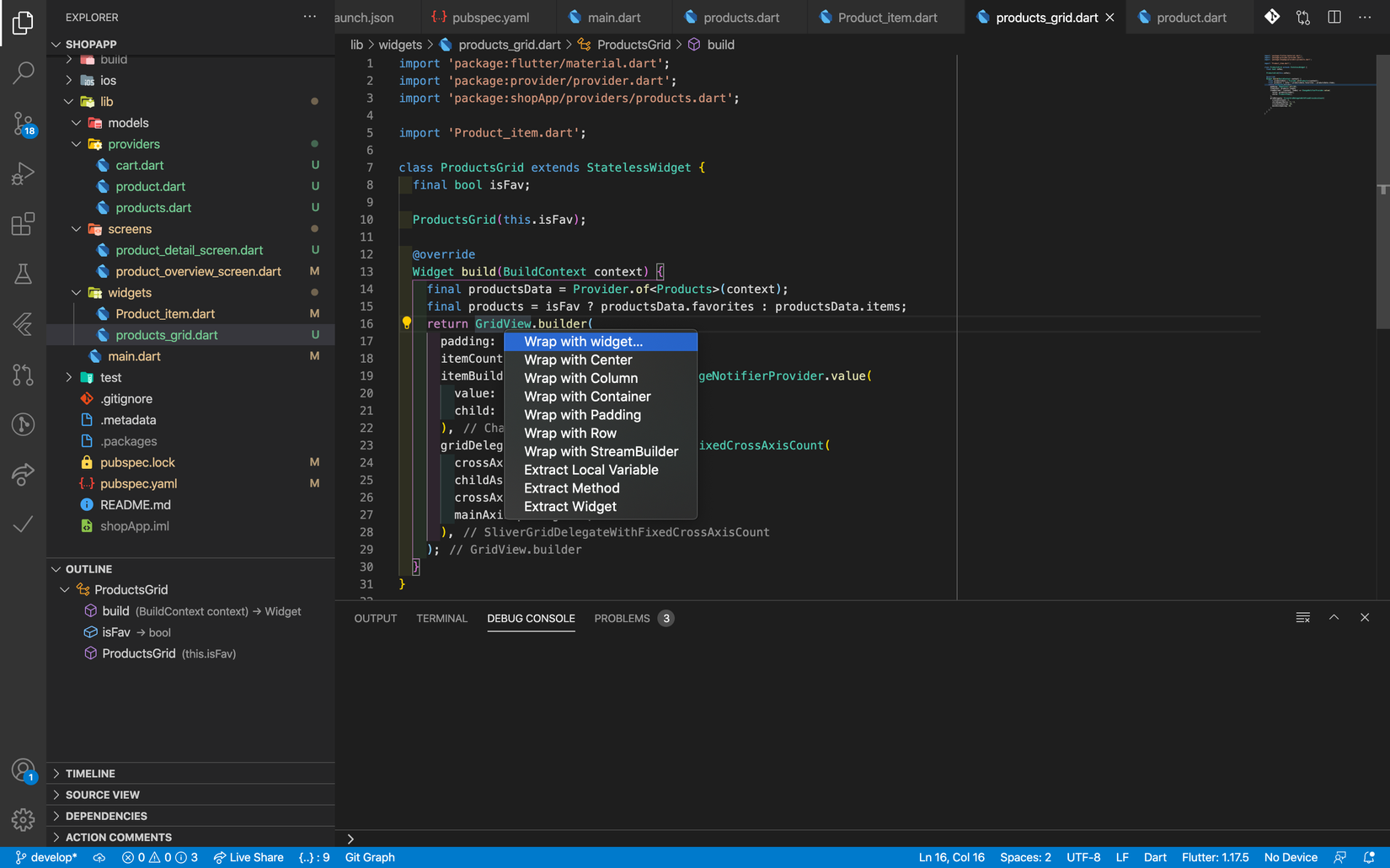 Đôi khi mình cũng dùng tổ hợp phím này cho việc Extract widget thành các widget nhỏ hơn tiện cho việc reuse code và làm code dễ đọc hơn.