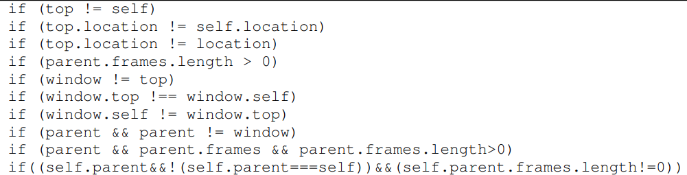 Frame busting là kĩ thuật sử dụng javascript để phát hiện trang web có bị frame hay không. Một đoạn code điển hình của kĩ thuật này: