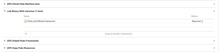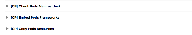 - CocoaPods đã thêm một số scripts trong các giai đoạn xây dựng mục tiêu của chúng tôi. Thường có ba scripts được thêm vào các giai đoạn xây dựng của mục tiêu