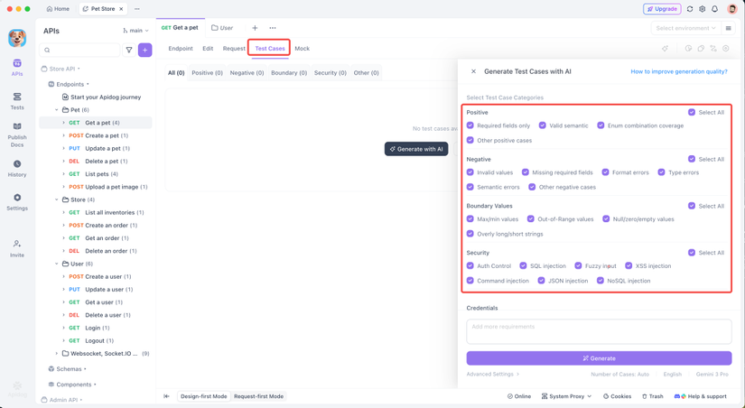 Lúc đó, tôi biết đượcApidog có tính năng "tự động tạo test case bằng AI". Thành thật mà nói, lúc đầu tôi nghĩ "chắc cũng không dùng được đâu", nhưng sau khi thử thì nó thực tế hơn tôi tưởng nhiều.