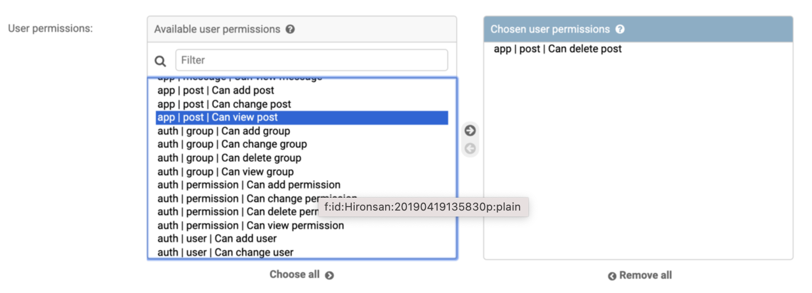 Lấy một ví dụ như , Trong một Application có tên là app, có model tên là Post, vậy khi run migrate thì sẽ có 3 permission như sau được tạo ra.
