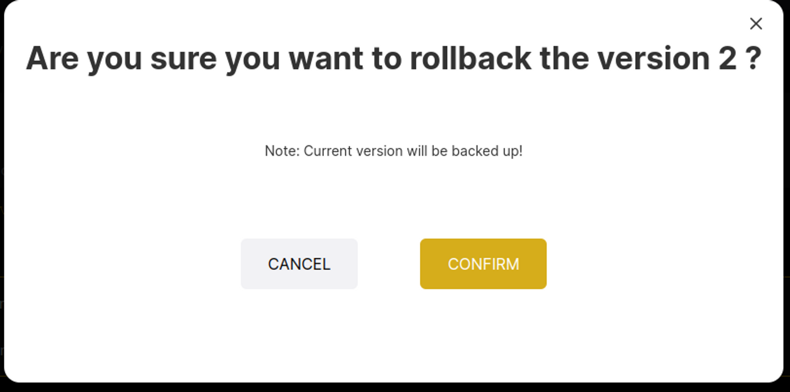 7, Bấm confirm để xác nhận chắc chắn mình muốn quay trở lại version trước đó