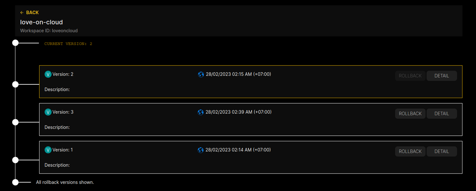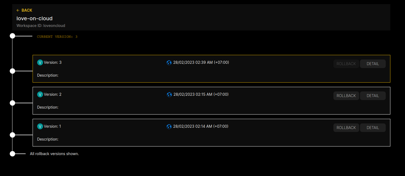 6, Ngay lập tức mình sử dụng tính năng rollback để revert lại toàn bộ data, config mà mình đã setup trước đó, việc này cũng đồng nghĩa với việc quay lại sử dụng phiên bản code trước đó. Nhưng mình có thể chấp nhận điều này vì hơn hết mình đã trở lại đúng config cũ một cách nhanh chóng.