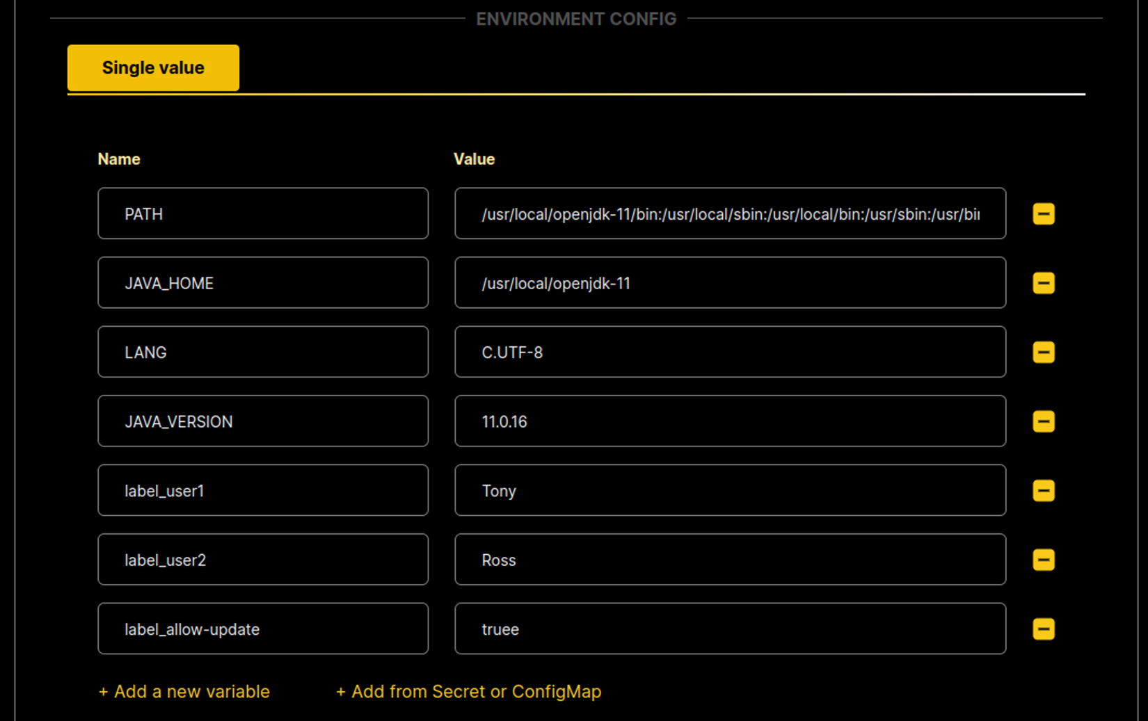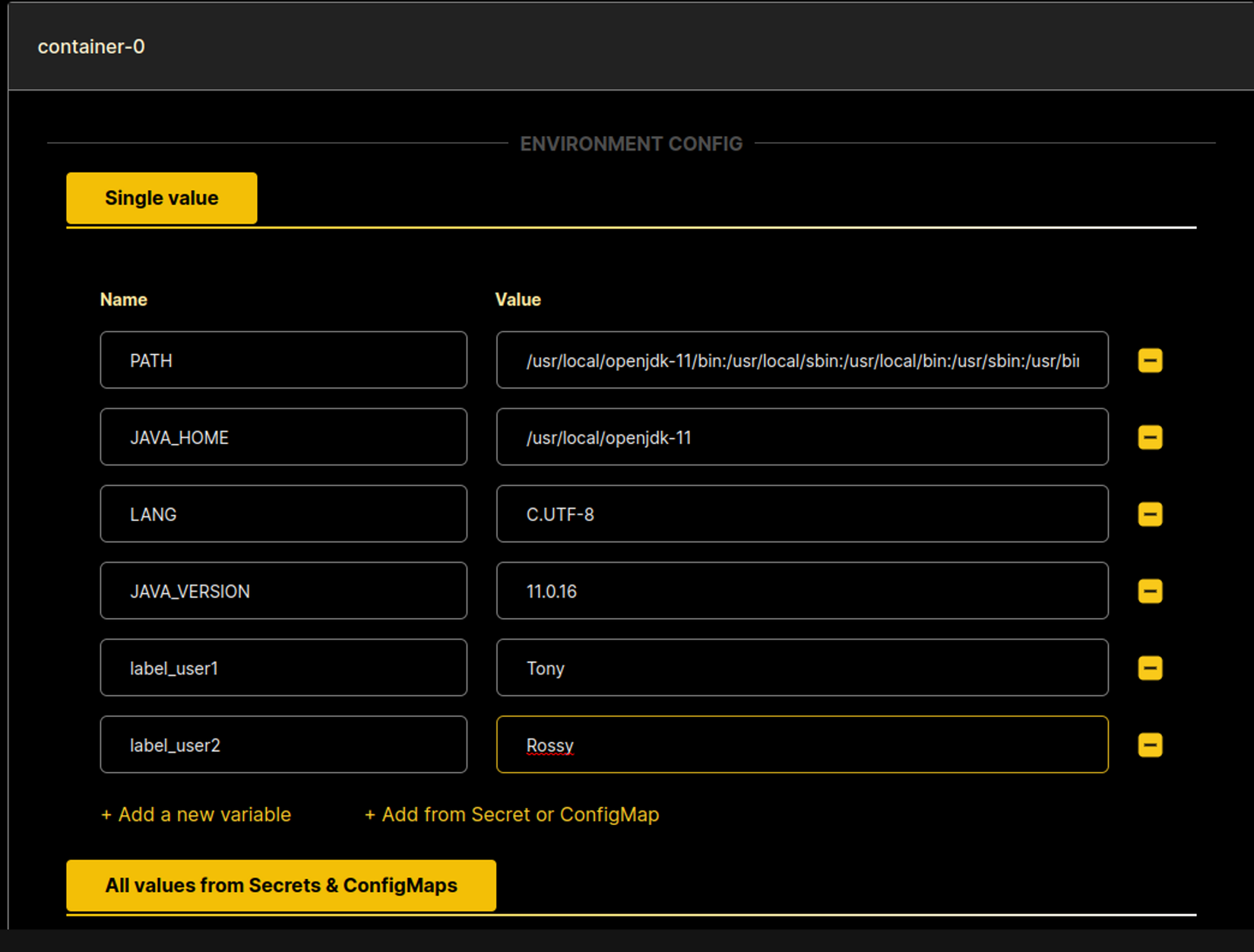 3, Còn thời gian mình update một chút và deploy một phiên bản mới lên sau đó, mình cho thêm một config mới vào application của mình