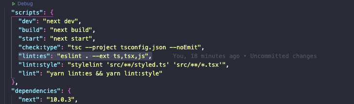 Ok. Sau khi cài xong Eslint và Prettier bạn cần phải thêm một đoạn "lint:es": "eslint . --ext ts,tsx,js", vào "scripts" trong package.json