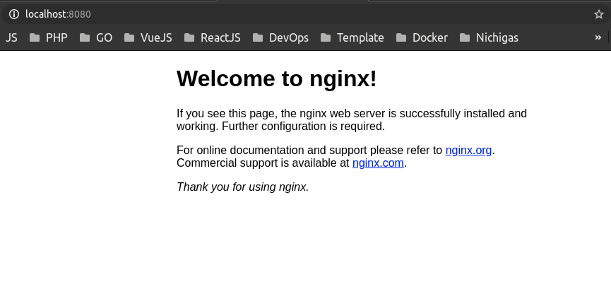 docker container run -p 8080:80 --name nginx_tutorial nginx
