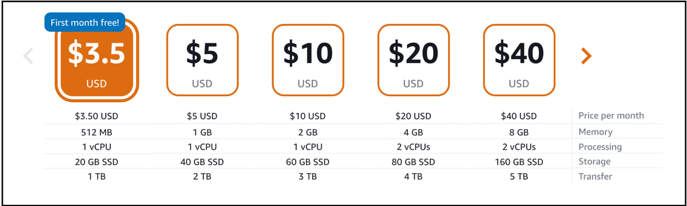 Còn đối với Amazon Lightsail thì được dùng thử miễn phí 1 tháng 30 ngày miễn phí trị giá
